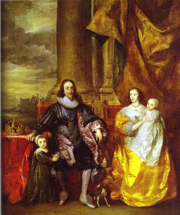 Charles i and queen henrietta maria with charles prince of wales and princess mary 1632, a classic Baroque Art masterpiece by Anthony van Dyck and is expertly recreated as a high-quality hand-painted oil painting reproduction.