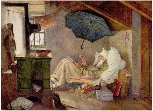 Created by Carl Spitzweg, Der arme poet interior and stands as a notable example of the Romanticism, reproduced as a traditional hand-painted oil painting.