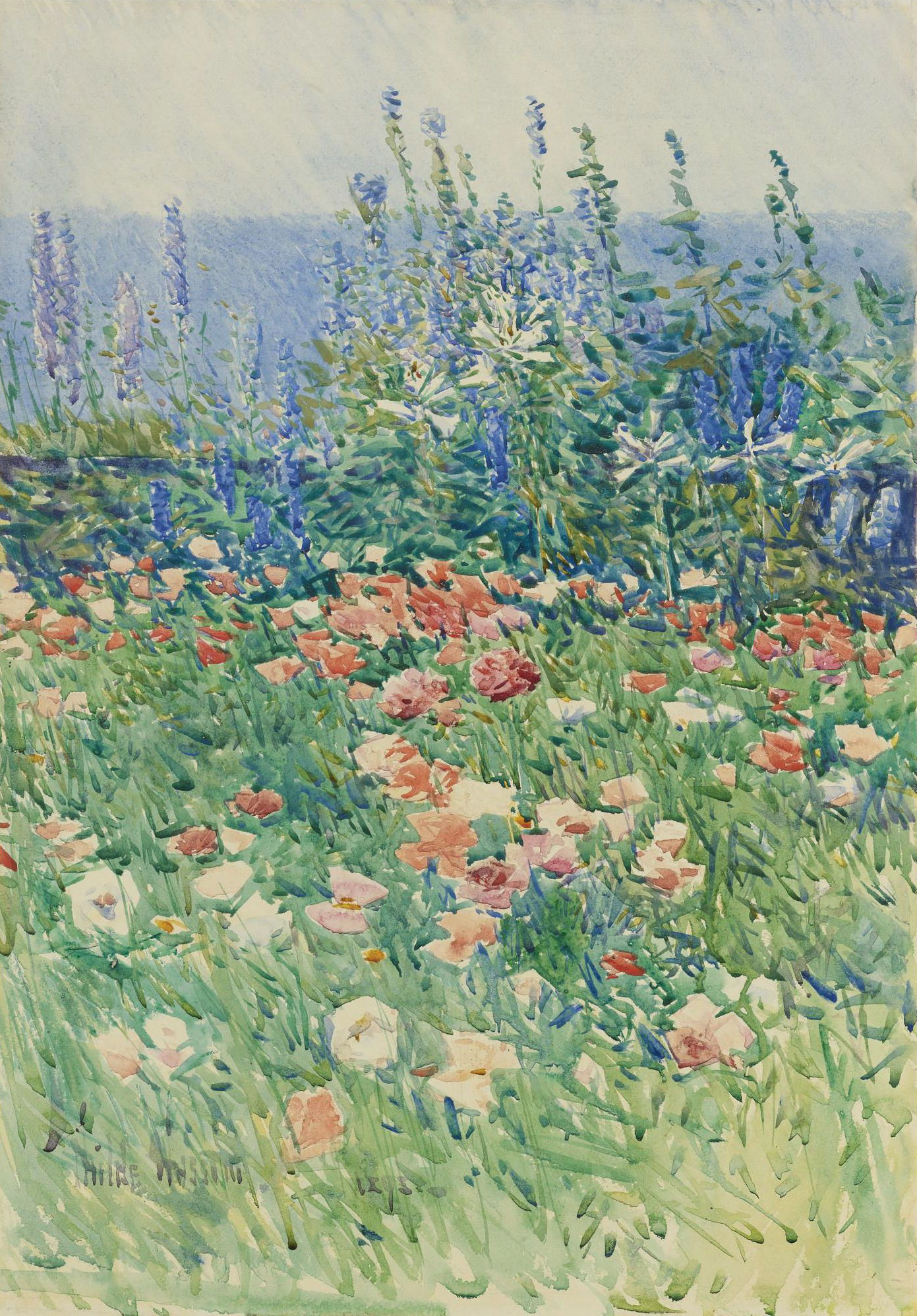 Delve into the rich visual tapestry of Flower garden isles of shoals 1893, a masterpiece crafted by Frederick Childe Hassam. This artwork vividly brings to life the subjects of Landscape painting. It is rooted deeply in the expressive techniques of the Impressionism style.