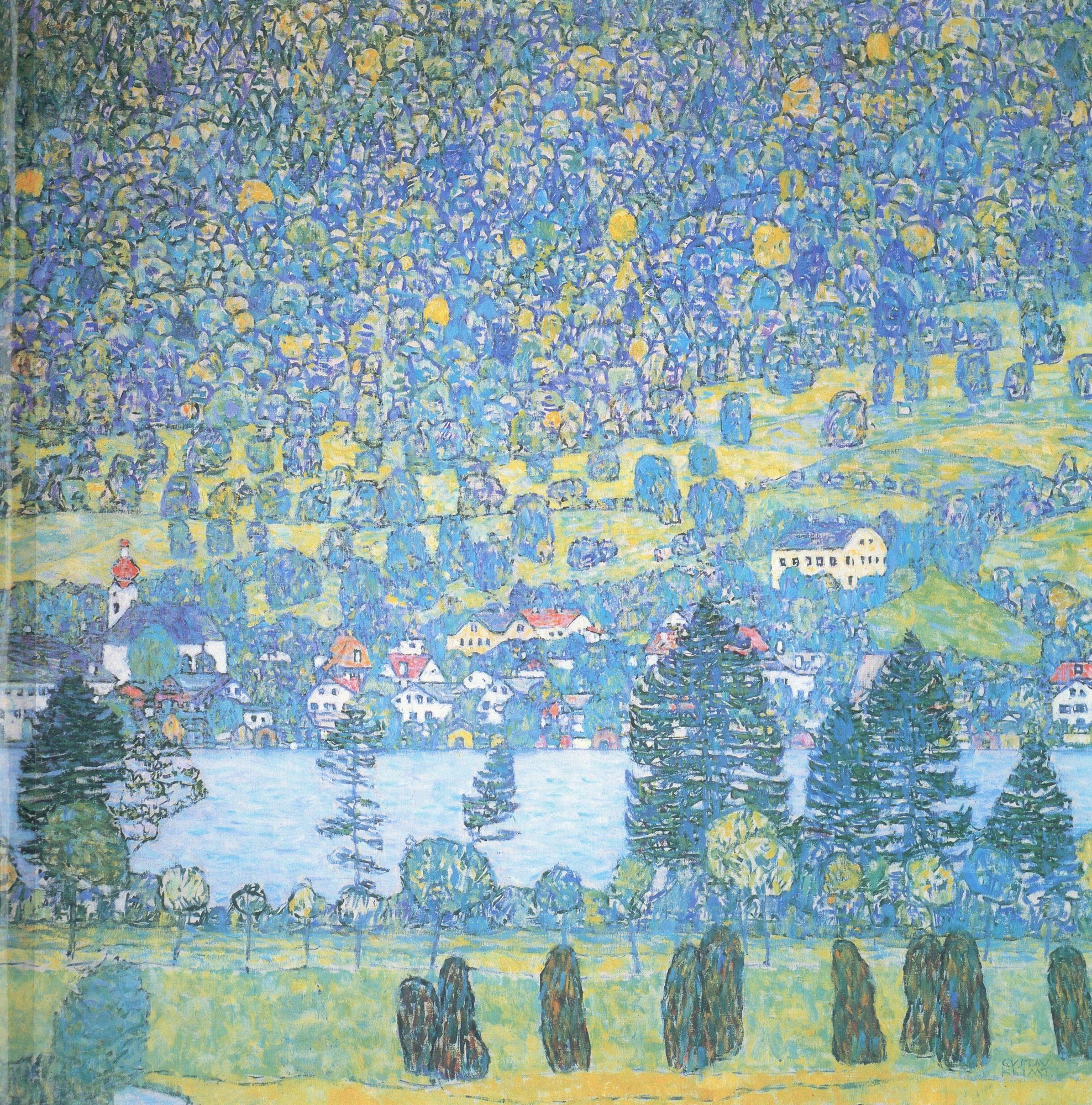 Forest slope in unterach at the attersee 1916, crafted by Gustav Klimt, is a compelling Symbolism, Art Nouveau artwork.