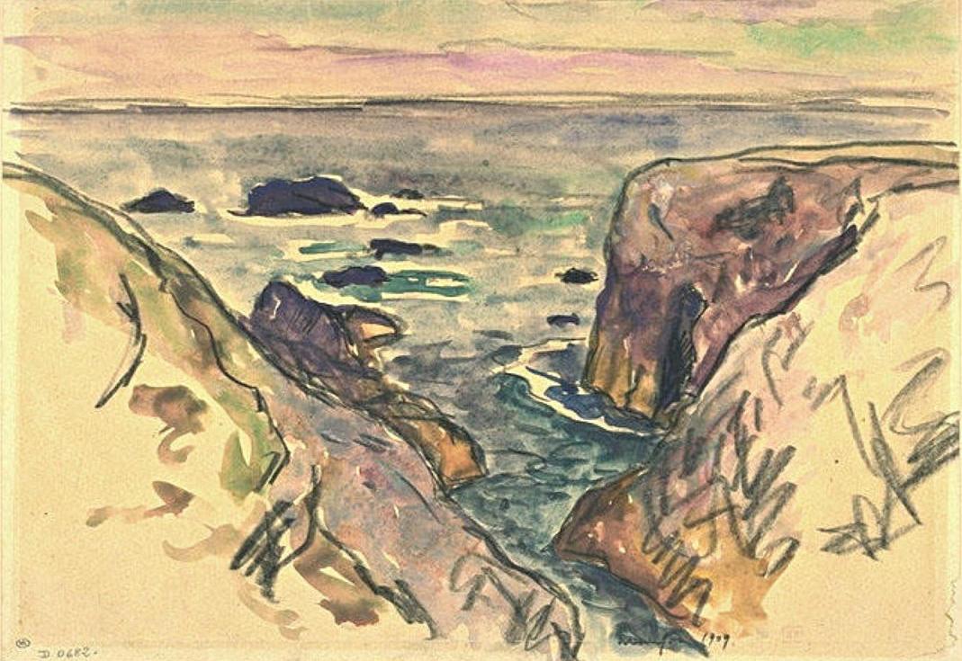 An essential addition to any fine art collection, Belle ile en mer evening cote sauvage 1909 by Maxime Maufra exemplifies the very best of Impressionism, Post Impressionism. This piece offers a unique perspective on Landscape painting, showcasing the artist's masterful command of the canvas.